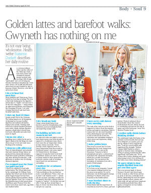 Body + Soul, the Sunday Times supplement featured Suzanne describing her daily routine and compares her to Gwyneth Paltrow – they’re both blonde but the similarities end there.